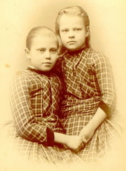 Hilda sittande och Beda stående.