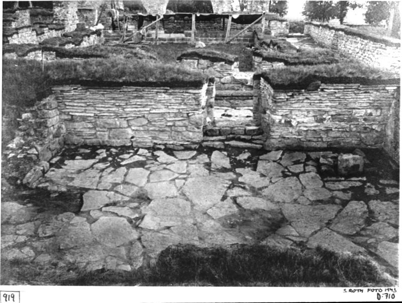 Norra längan. Refektoriet. T.v. muren mellan kök och refektorium från norr och uppifrån.