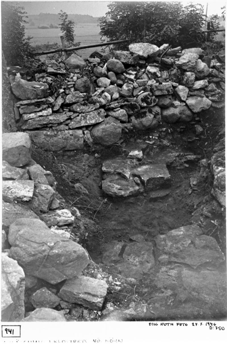 Anläggning i klostrets Nordöst hörn. Nordmurens ostligaste parti under framgrävning. Mot ö.