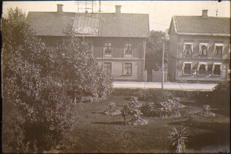 Järnvägsgatan, Gamla telegrafen och Falströms. Stationsinsp. Ekdahl i förgrunden.