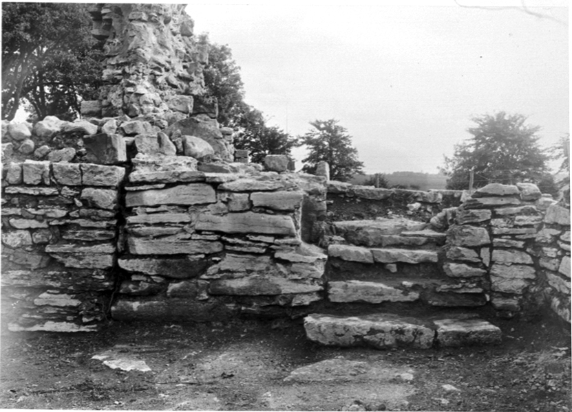 Klostret. Södra korsgångens vänstra ända. Romanska kyrkans nordvästra hörn. Foto mot S.
