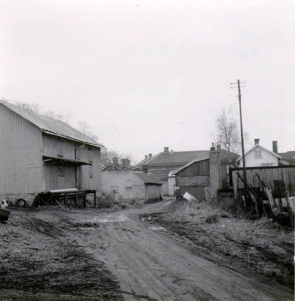Foto från Trädgårdsgatan, hörntomten Östertullsg/Storg. gårdssida.