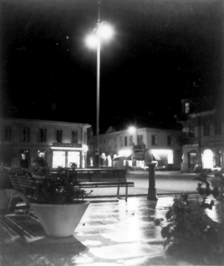 "Torget, sent en sommarkväll". Från utställningen "Falköping i bild" 1952.