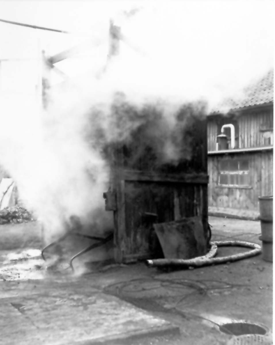 "Slaggen släckes", vid gasverket på Storgatan. Från utställningen "Falköping i bild" 1952.