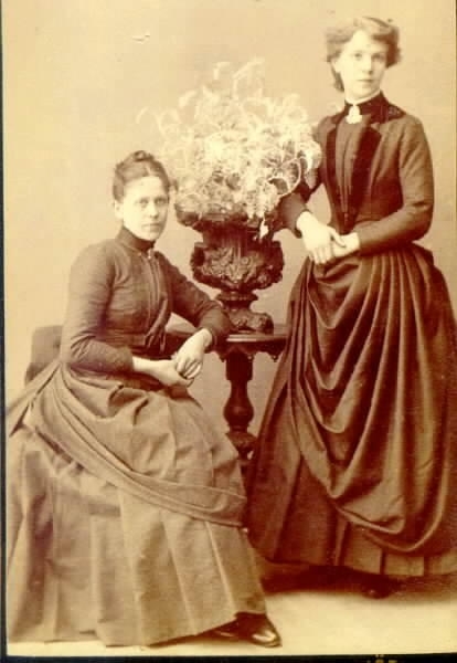 Fr.v. Gustava och Anna Hulting, den förra gift med målaremästare Gustafsson i Skövde.