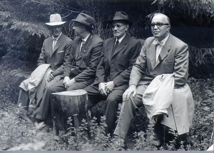 Siesta vid Ruskela källa: Från vänster: Erik Andersson, Valter Landrén, Harald Johansson, Nils Löving.