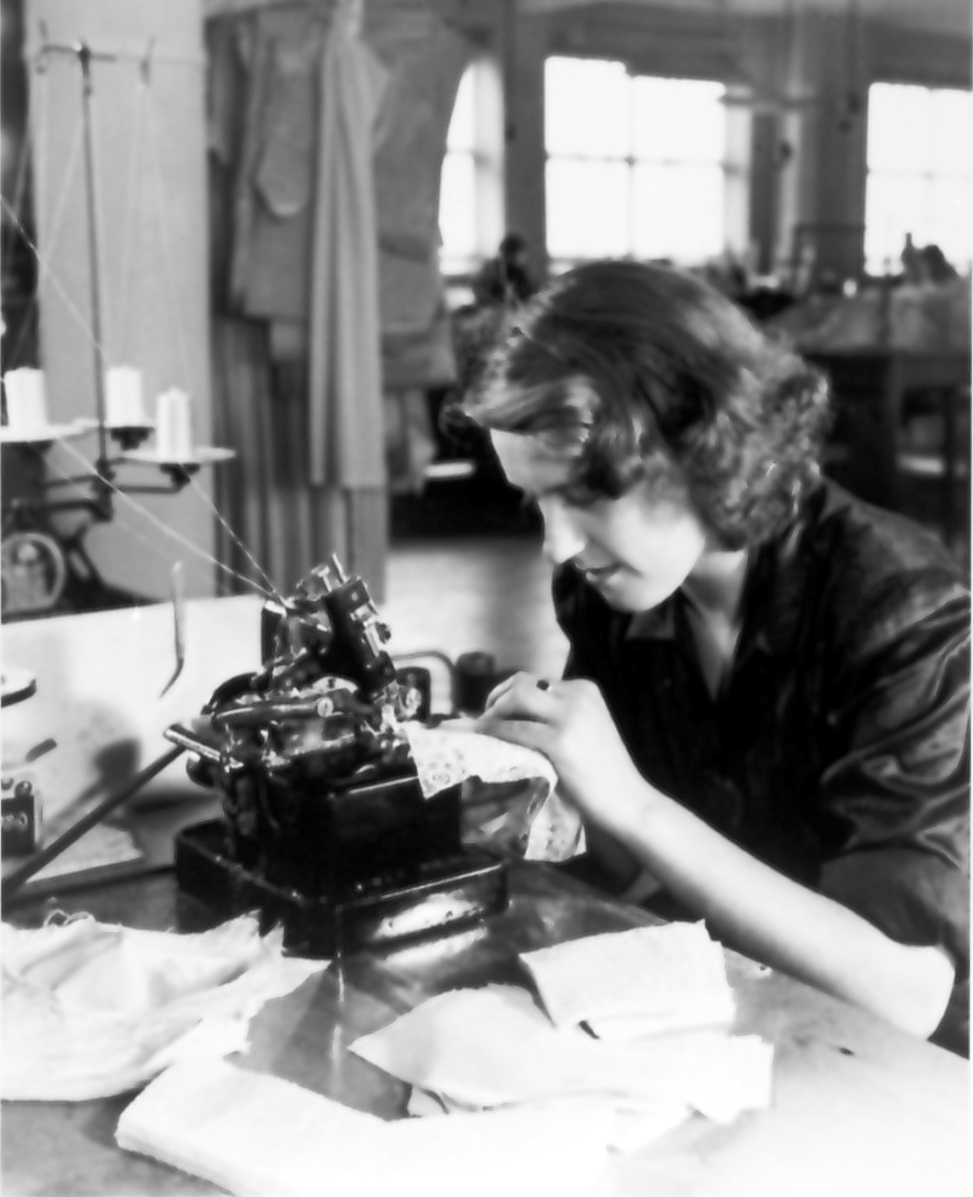 (Behå i overlockmaskinen). Från utställningen "Falköping i bild" 1952.