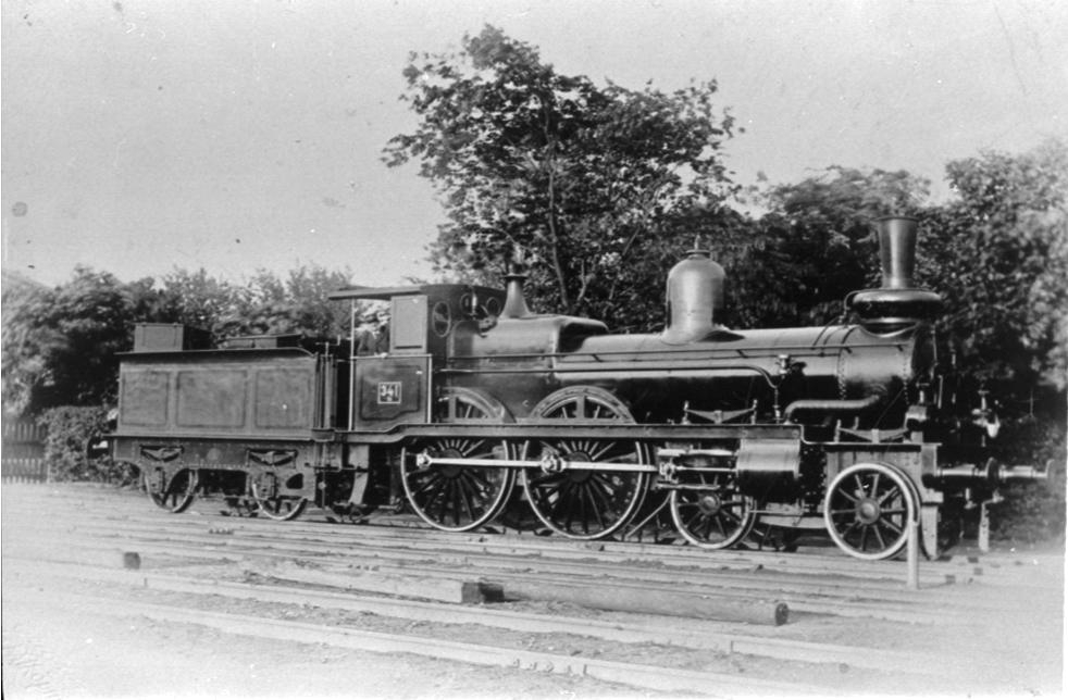 Ett gammalt lok. Lokmästare Andersson syns på loket.