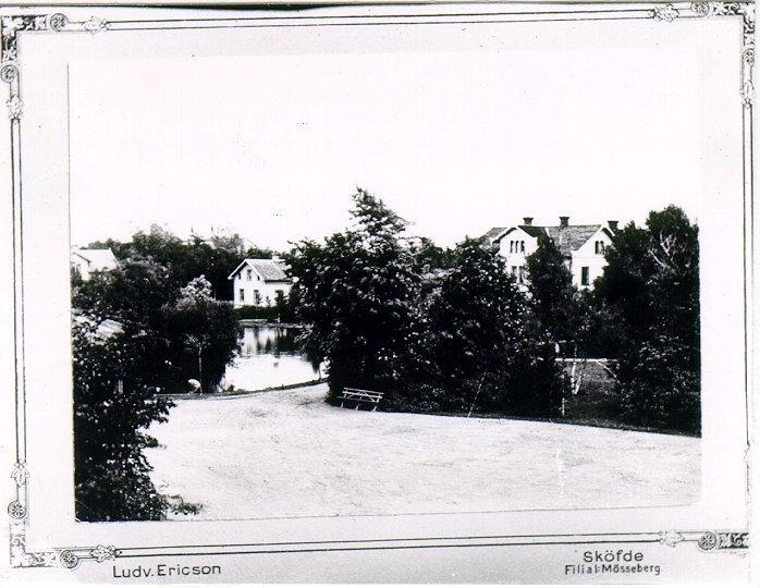 Längst till vänster Villa 25. Villa 17 (nedanför Svandammen). Till höger Villa 14. Denna som brann omkring 1969, var pensionat. Var byggd av byggmästare Pettersson.