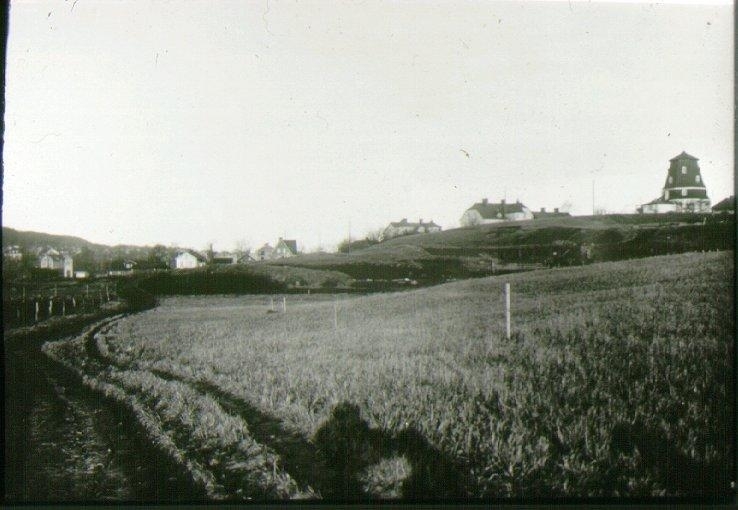 Vasagatan, utstakat genom gärdet. Med bebyggelse i bakgrunden.