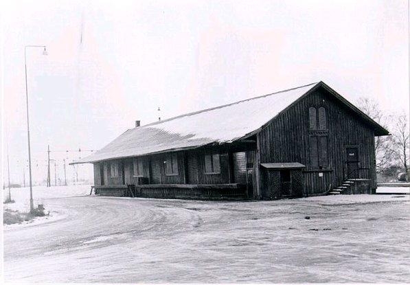 Magasinbyggnad vid Falköpings södra järnvägsstation. Från norr och från nordost.