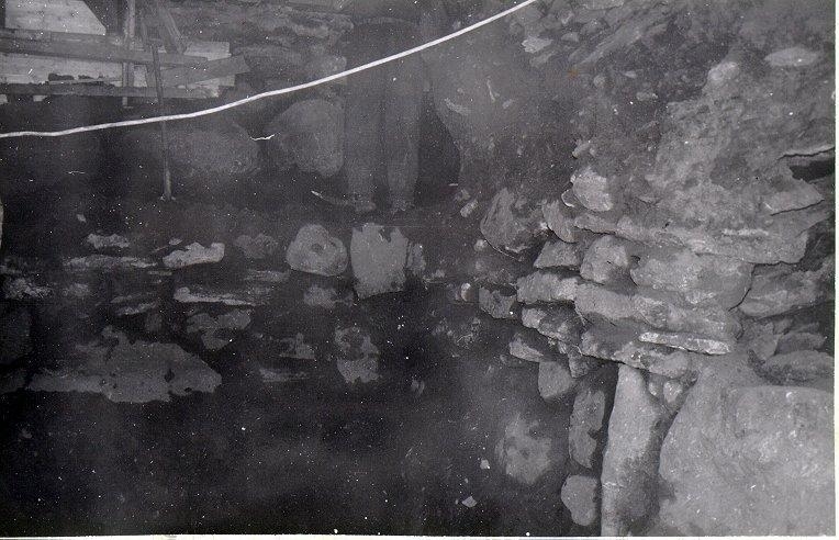 Kv. Rådmannen, Stora torget 19 - Storgatan 5. Grävningsarbete under Hägertz herrekipering. Korta muren mot Stora torgetoch huvuddelen av långa muren mot Rådhusets tomt.