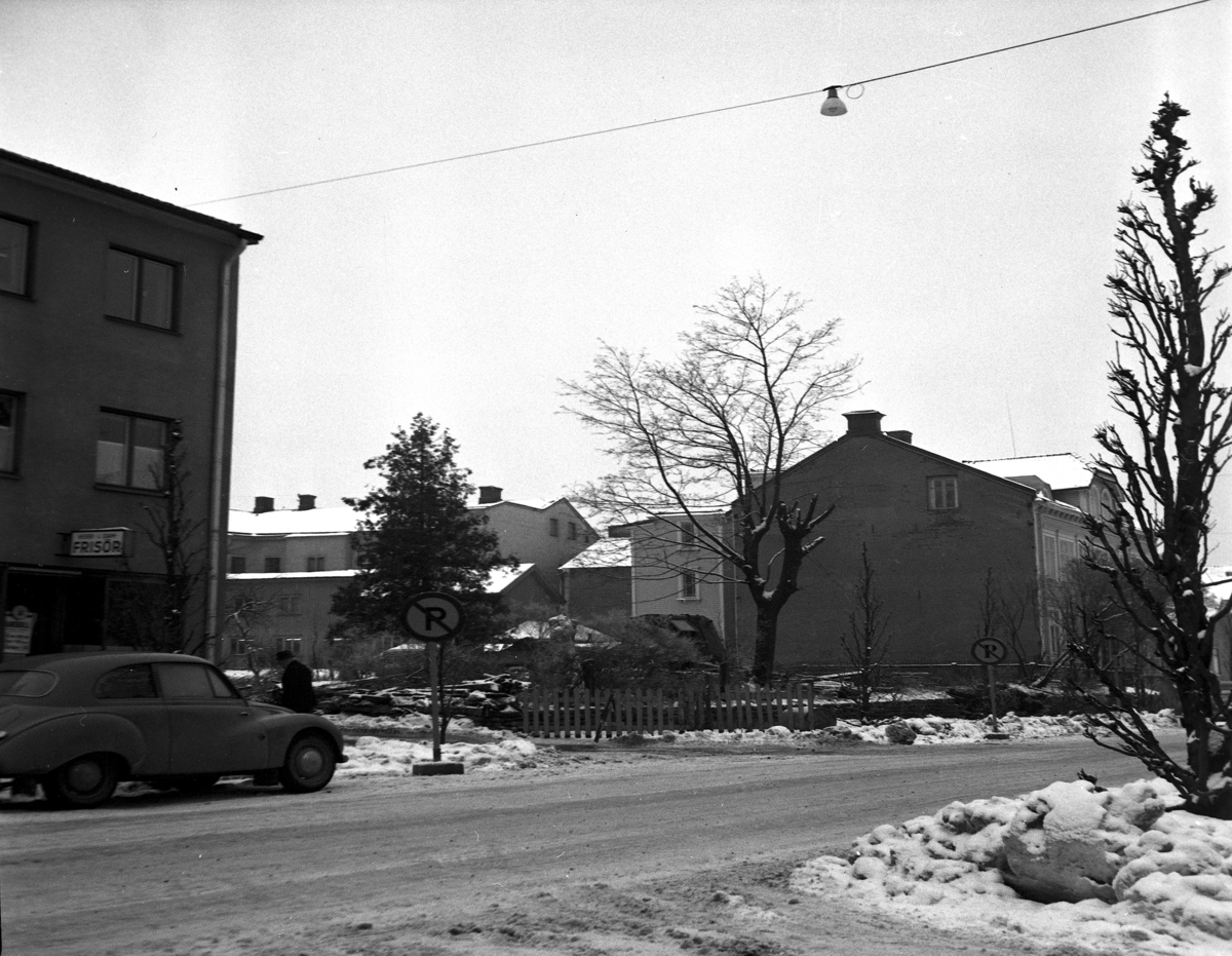 Kv. Guldsmeden. Trädgårdsgatan 20. Carl Botvids tomts avsöndring mot Trädgårdsgatan. A.-B. Turitz nya tomt före bebyggelsen (EPA-varuhuset).