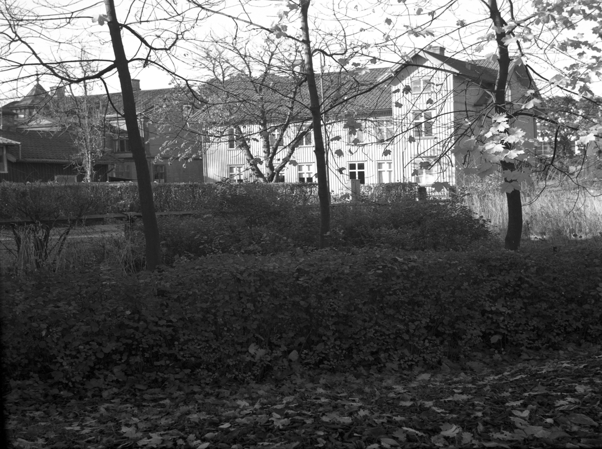 Gamla telegrafen, revs 1966-1967. Baksidan fr. söder. Telegrafen hade länge sina lokaler i träkåken mitt emot Centralstationen på Järnvägsgatan 20. Telegrafverket och posten hade omväxlande första och andra våningen. Genom ägobyte förvärvade Telegrafverket tomt 13 i Kv S:t Staffan vid Bryngelsgatan, och nybyggnad där var klar 16 juli 1960 då Järnvägsgatan 20 upphörde att vara telegrafstation. Falköpings postkontor hade flyttat tidigare, nämligen 1929 och då till byggnad i samband med Stora hotellet i Kv Midgård vid Bryngelsgatan.