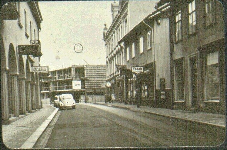 Storgatan mot väster. S:t Olofs hus i fonden under byggnad.