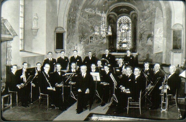 Mössebergs musikkår i S:t Olofs kyrka 25/2 1945.