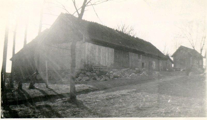 Måns Jönsgården. Ladugårdsbyggnader. Södra längan. Framsida och mindre gårdsbyggnad. Ursprungligen var det tre lika långa längor samt tvenne boningshus (omkr.1860). De båda del av Månsgården, sedan isärflyttade.