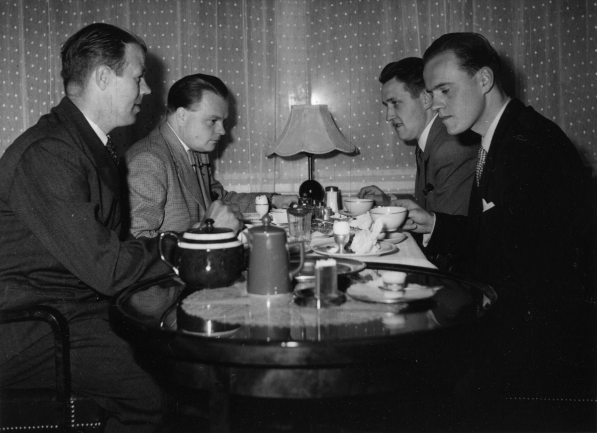 Titel: Avslutning med kursen i företagsekonomi. Utfärd till Lund och Helsingborg. En grupp okända män.