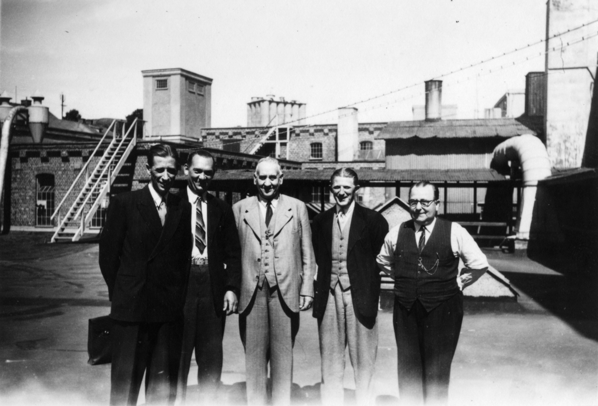 Från vänster: Valter Waltenius, Kurt Kjellman, ?, Sigge Gullstrand, Edvin Asklöf.