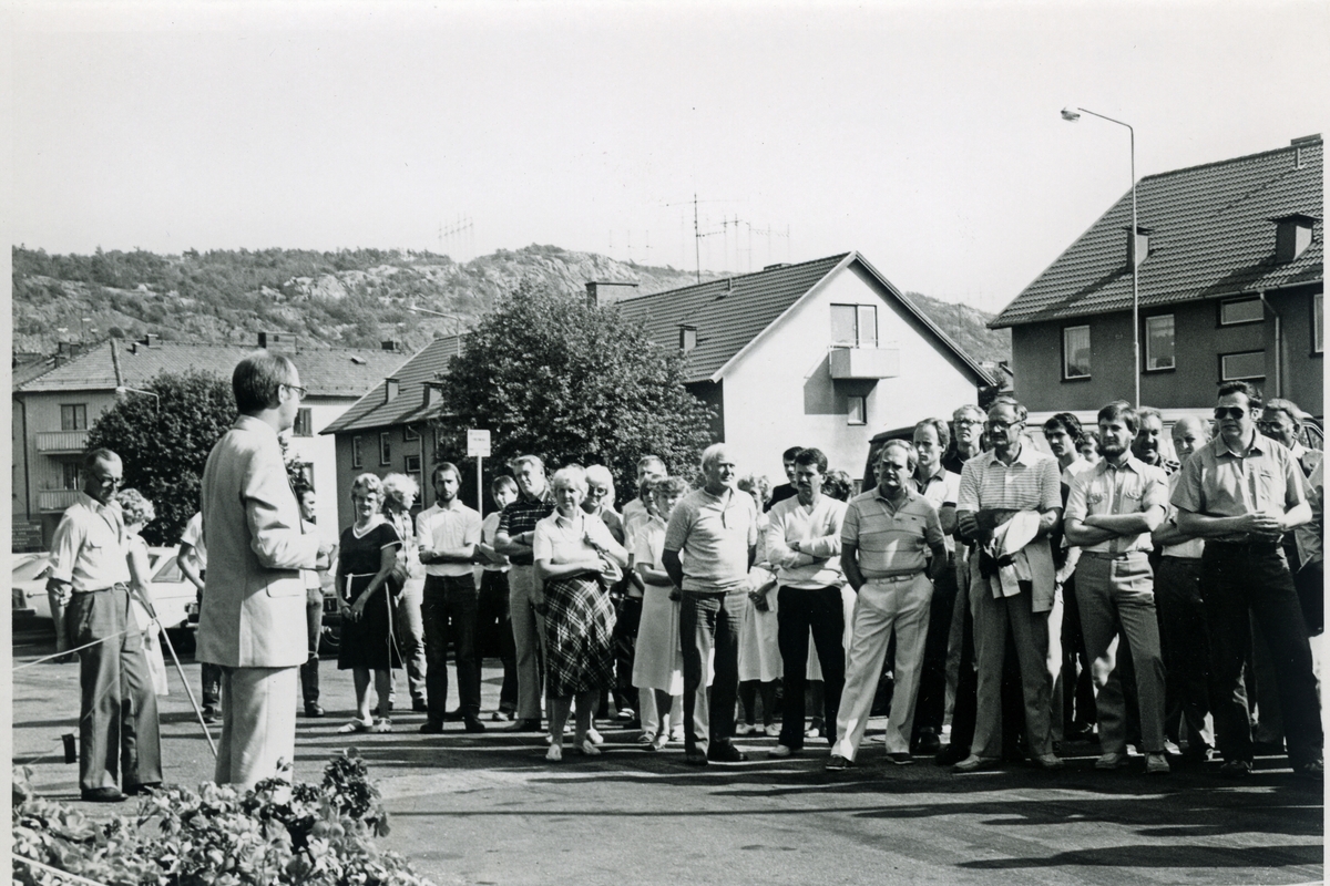 Scanpump i Mölndal. I mitten av 80 talet fanns funderingar att flytta tillverkning av pumpar från Gothia pump i Höör till pumptillverkningen i Mölndal. För att visa samt att intressera de som var anställda på Gothia att det fanns möjligheter att flytta till Mölndal och få arbete på pumptillverkningen där, bjöd man därför hit de anställda i Höör f;r att tillsammans med sina familjer se vilka möjligheter som fanns för utveckling och anställning. På bildenhälsar VD Hans Borneson de hitresta från Höör välkomna till Mölndal. Undertecknad visade verkstaden och efter detta fortsatte undertecknad att med buss transportera samtliga runt i Mölndal för att marknadsföra densamma, både visa bostadsområden samt naturområden runt staden. M.V.H Lennart Wall Anställd 51 år på “Pumpen” (Längst av alla)