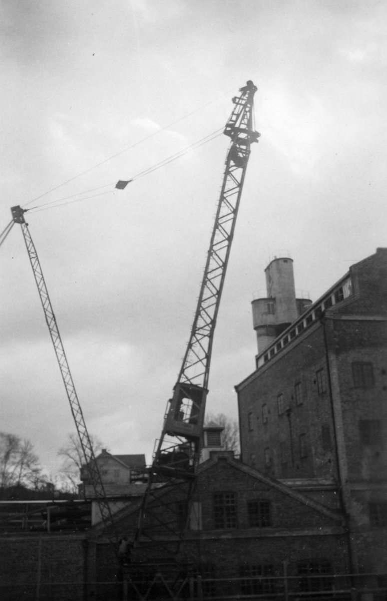 Lagerbyggnad 110 och 111 under uppbyggnad på Papyrus fabriksområde, 10/12-1945.