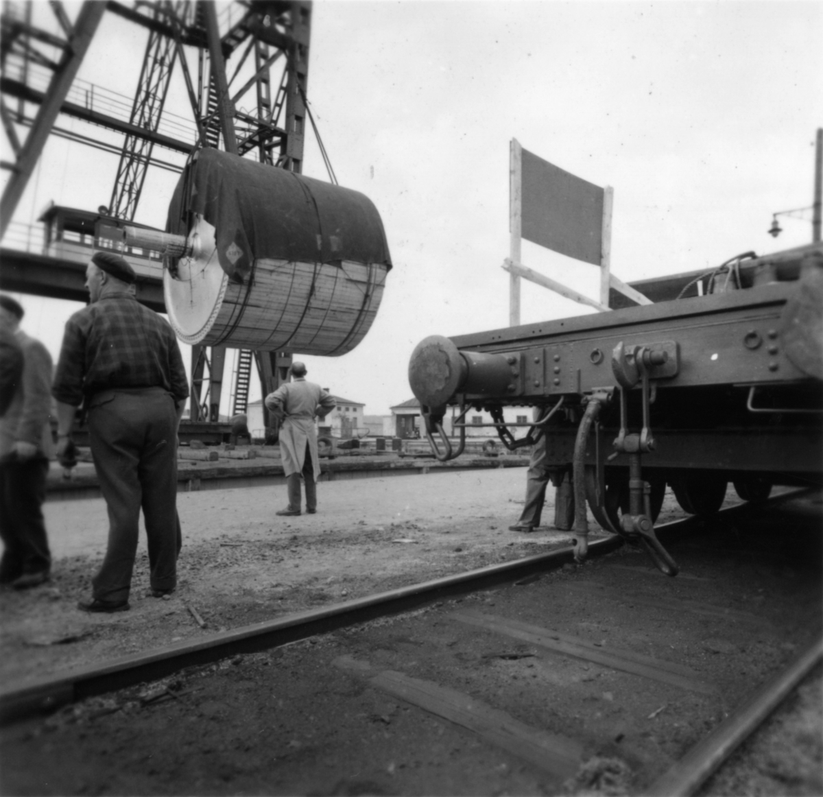 Titel: PM 2 N Yankeecylinder, transport. En grupp okända män.