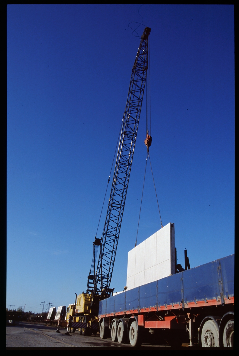 Kranbil lastar gods.