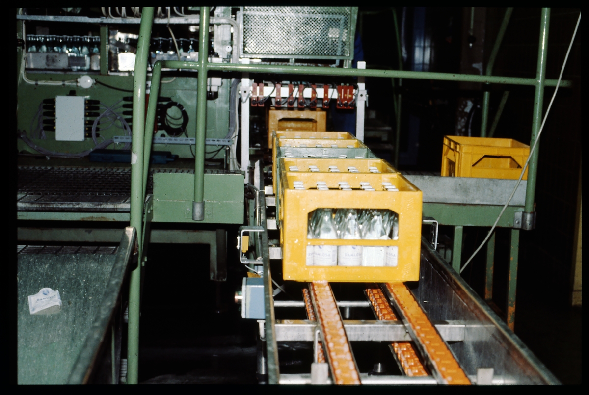 Packning av Ramlösa-flaskor i backar.