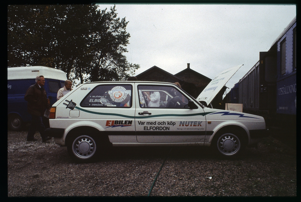 Volkswagen elbil. Nutek. Här i samband med utställning vid miljötåget Ekomotivet.
