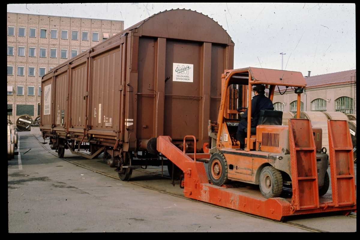 Godsvagn märkt LM Ericsson Telekabel Divisionen.