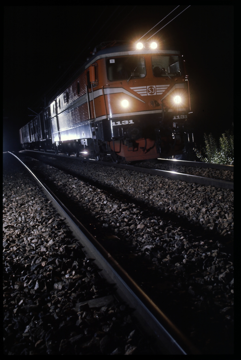 Statens Järnvägar SJ Rc2 1131, med godsvagnar.