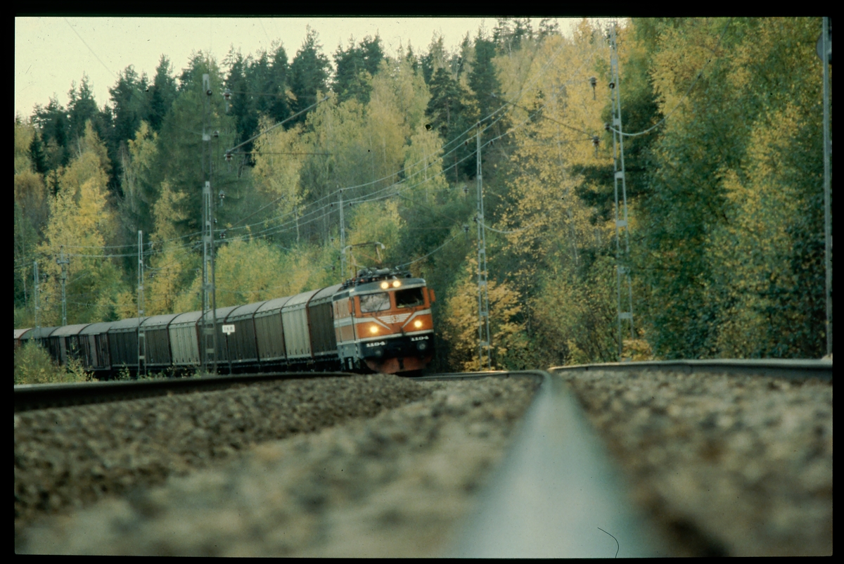 Statens Järnvägar SJ Rc2 1104. Med godsvagnar