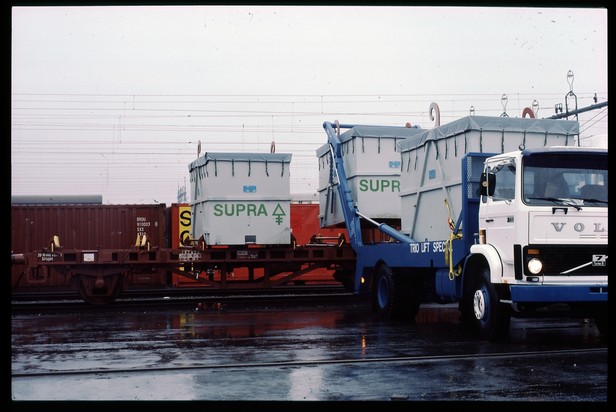 Lastning/lossning av behållare. SJ Lgjs 20-74-440 4 077-9.
