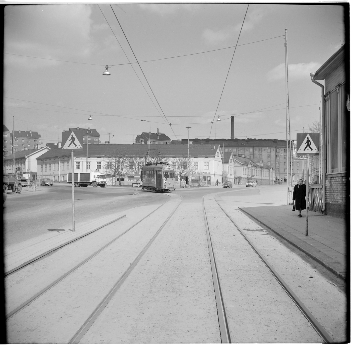 Turun Kaupungin Liikennelaitos, TuKL 42 "gasmasksvagn" linje 2 på Stålarmsgatan.