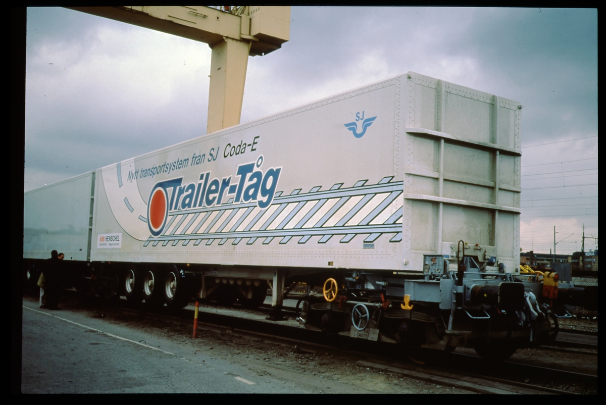 Coda-E trailer med SJ Uas ändboggi. Statens Järnvägar.