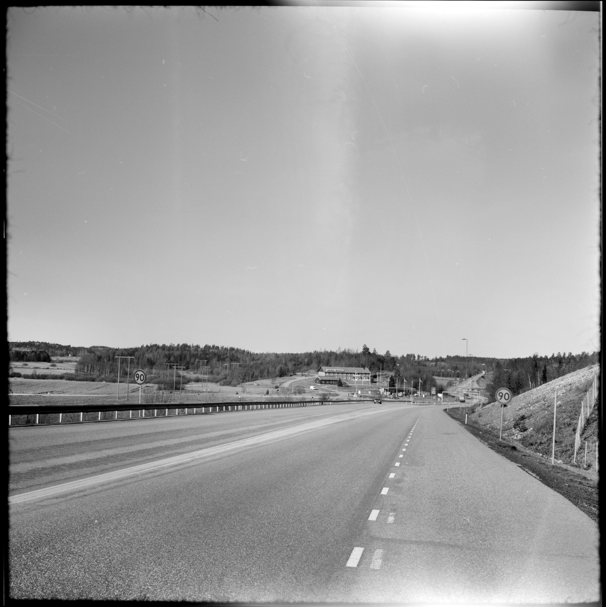 Läggesta värdshus och bensinstation vid infarten till Läggesta ses, till höger i bild.