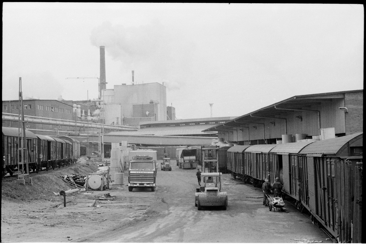 Lastning av vagnar på industrispår vid Väja fabriken.