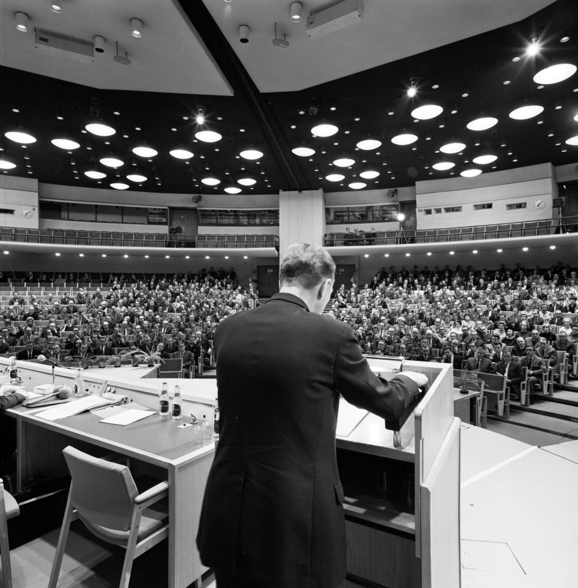 Tal av Generaldirektör vid informationsmöte. Statens Järnvägars Centralförvaltning i Folkets Hus Stockholm.