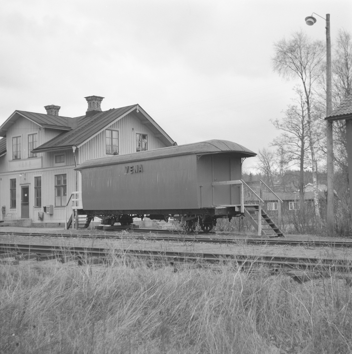 Före detta tjänstevagn från Statens Järnvägar, SJ B3C 453, avställd och använd som provisorisk post och järnvägsstation i Vena.