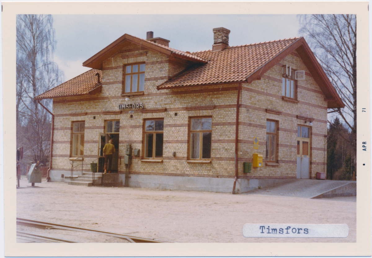 Station anlagd 1897. En- och enhalvvånings stationshus i tegel. Persontrafik nedlagd 1968-05-12. År 1930 till SJ, År 1935 elektrifierades banan.