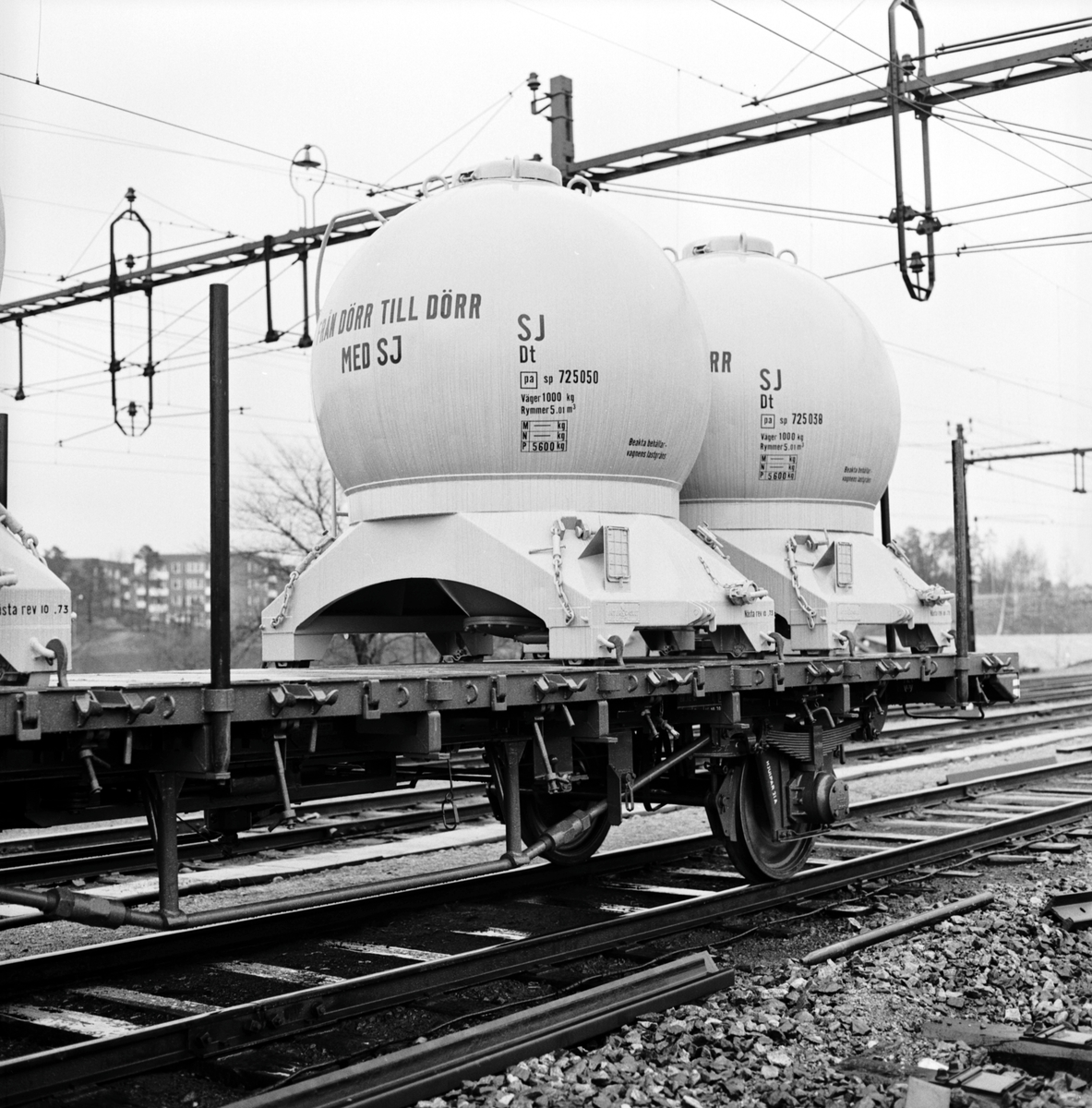 Titel: Statens Järnvägar, SJ Lbms. (fd Lbs). (fd Oubhl). Vagn med Dt-behållare, klotformad