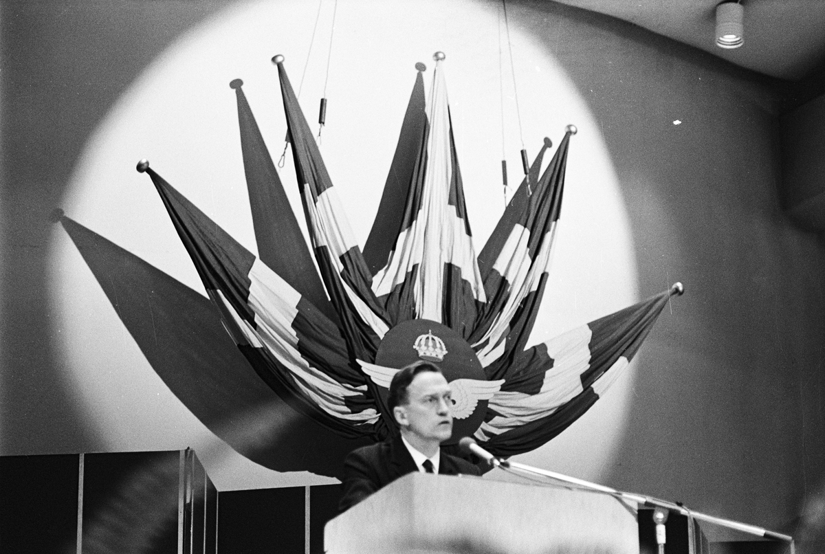 Tal av Generaldirektör Lars Peterson vid informationsmöte. Statens Järnvägars Centralförvaltning i Folkets Hus Stockholm