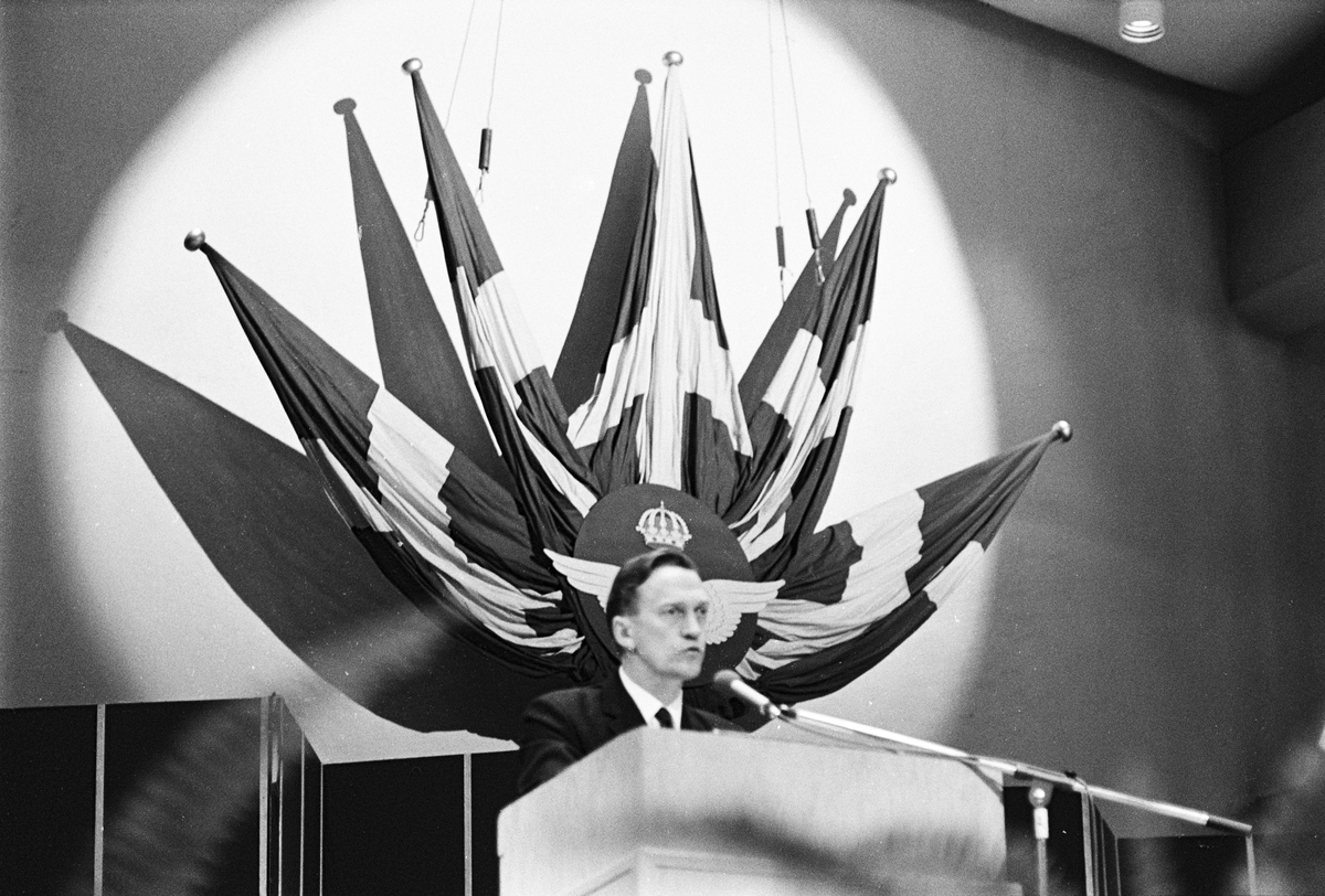 Tal av Generaldirektör Lars Peterson vid informationsmöte. Statens Järnvägars Centralförvaltning i Folkets Hus Stockholm