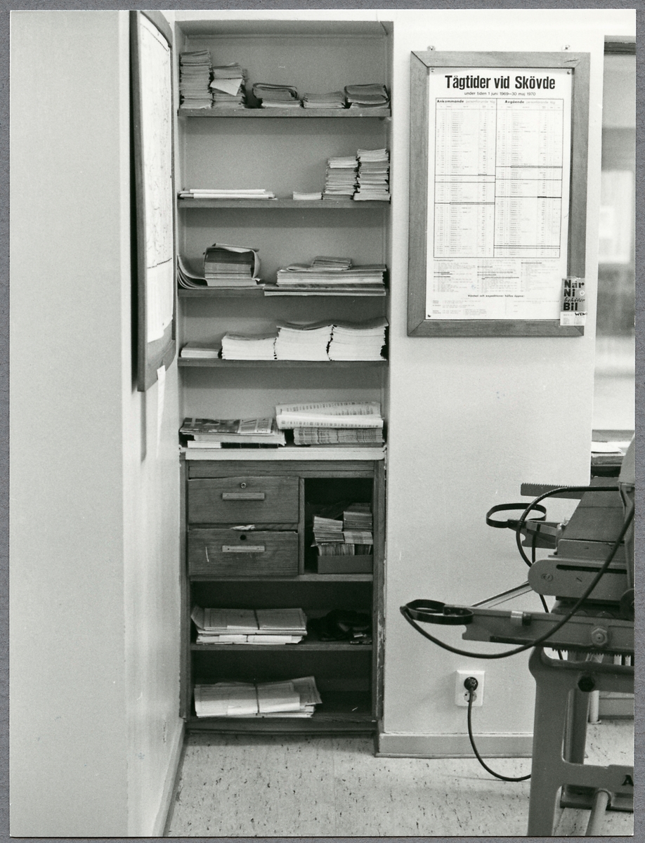 Titel: Interiör av Skövde stationshus, biljettexpeditionen.