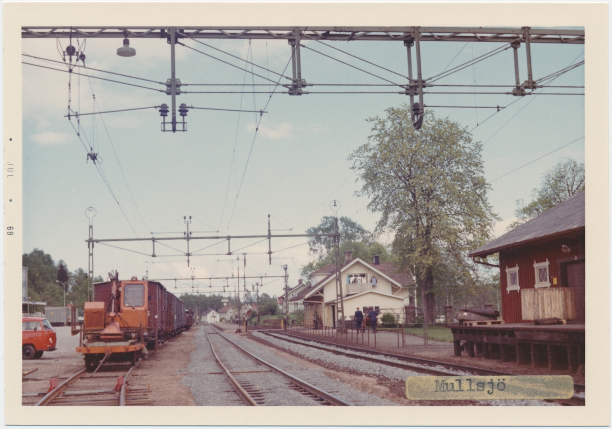 Vy över Mullsjö Station. Byggn-år 1927. Arkitekt: A Ekengren. Om eller tillbyggnadsår 1966.