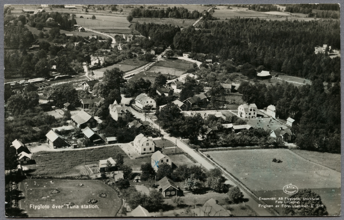 Flygfoto över Tuna. Järnvägsstationen är uppe till vänster.