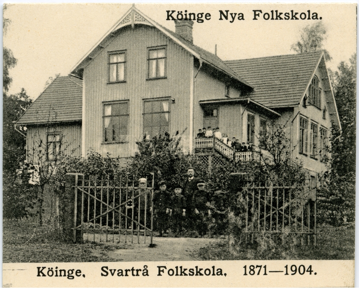 Vykort föreställande Köinge nya Folkskola. Kortet postgånget 1914.