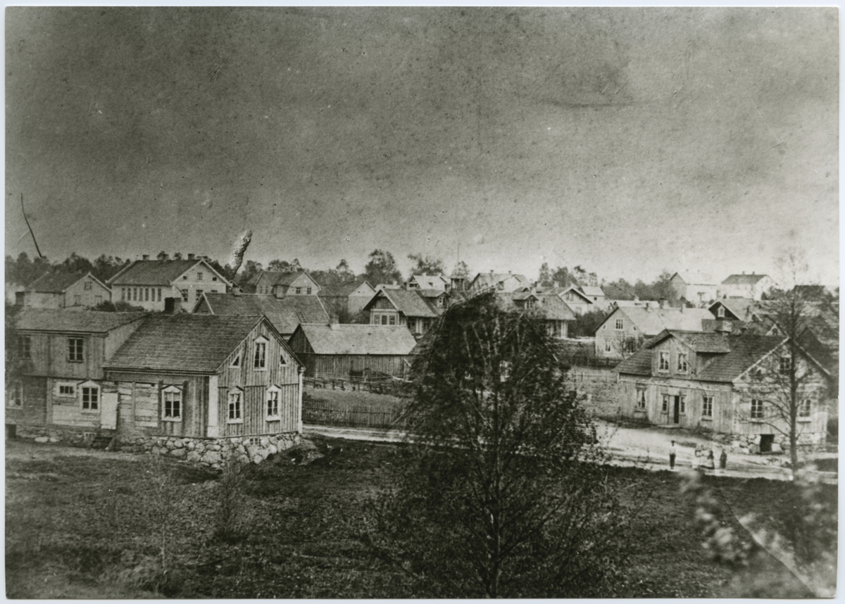 Det större huset i bakgrunden till vänster är hotellet och platsen är Älmhult.
