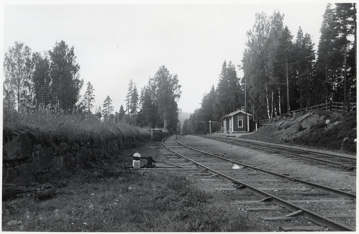 Borns hållplats. Till vänster på bilden synes en stor, numera övervuxen lastkaj.