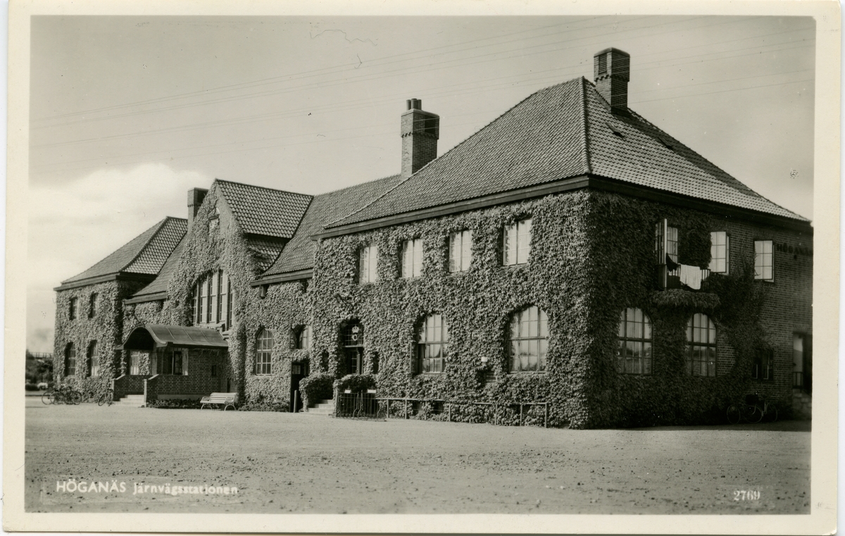 Järnvägen från Kattarp till Höganäs öppnades 1885 av SHJ, Skåne - Hallands Järnväg. I Höganäs fanns då två stationer, Höganäs Övre och Höganäs Nedre. Efter 1919 blev det en station istället för Höganäs Övre och Höganäs Nedre. Då byggdes nya stationshuset två våningar i tegel. Arkitekten var Folke Zetterwall. En stor ombyggnad ägde rum 1936, magasinet sammanbyggdes med stationsbyggnaden. Nedlagd 1992.